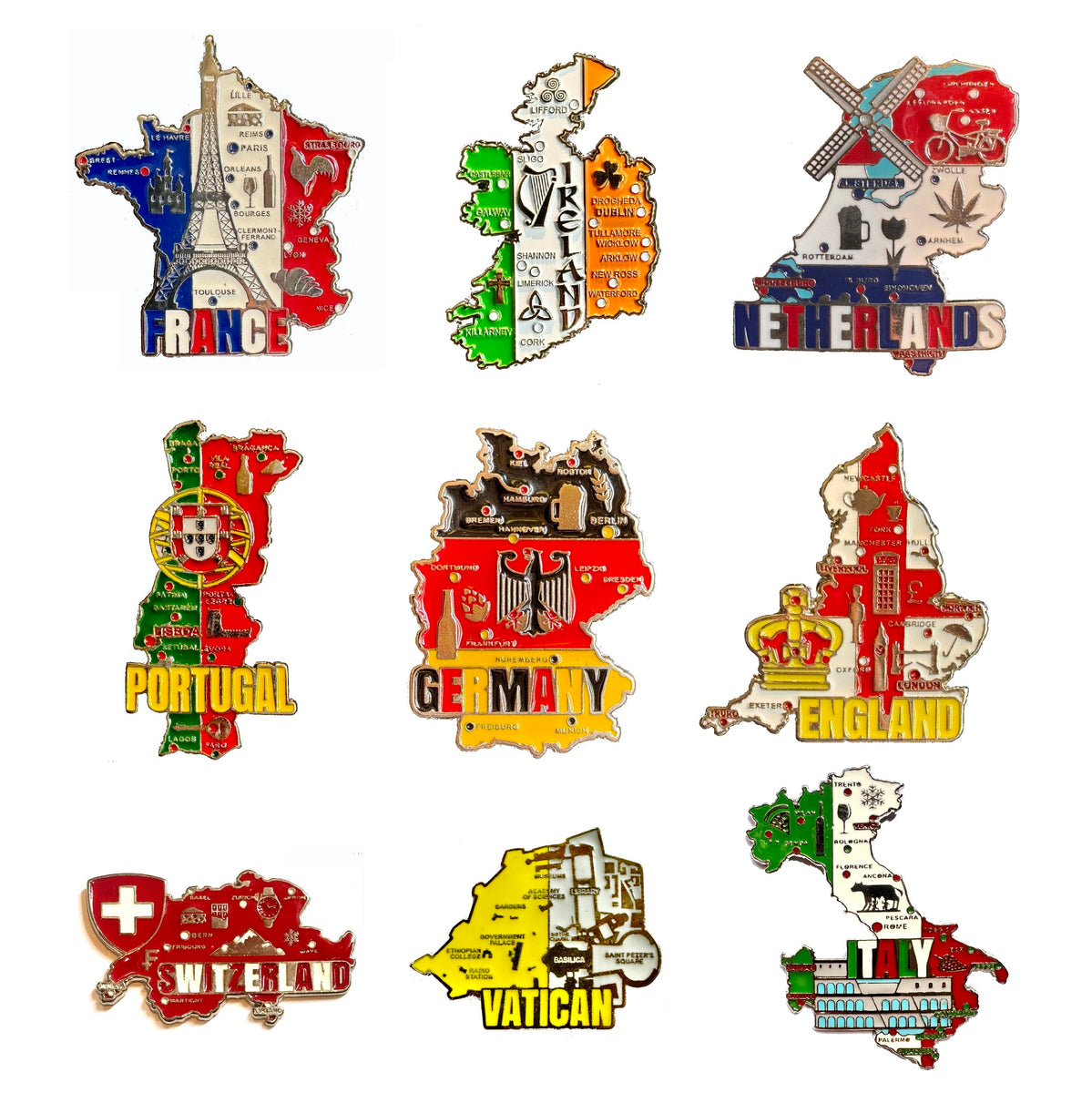 COMBO PROMOCIONAL - 09 (NOVE) IMÃS DE METAL DE MAPAS DE PAÍSES DA EUROPA