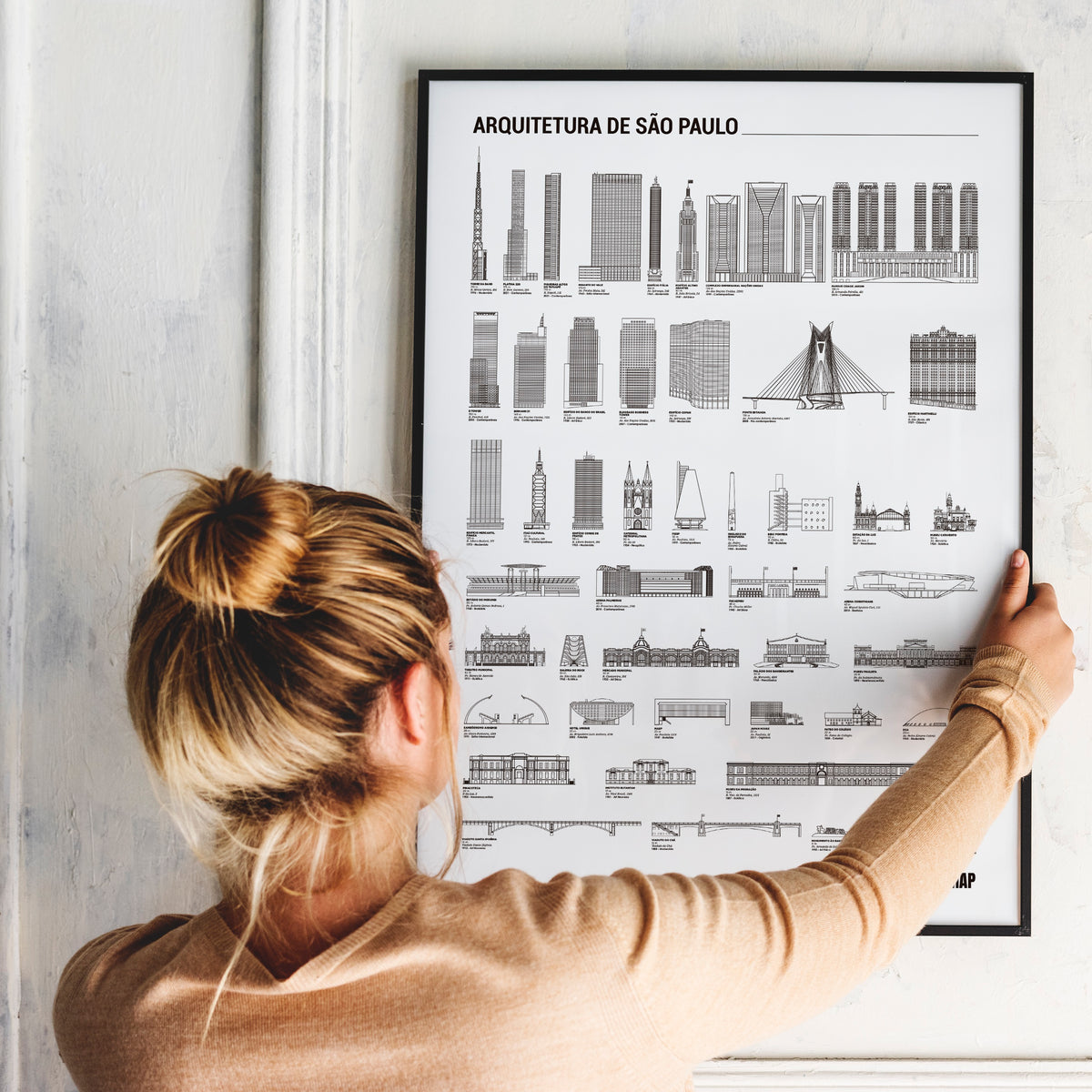 Pôster Maravilhas da Arquitetura por Ordem de Tamanho - Branco - Estilo Minimalista - A2