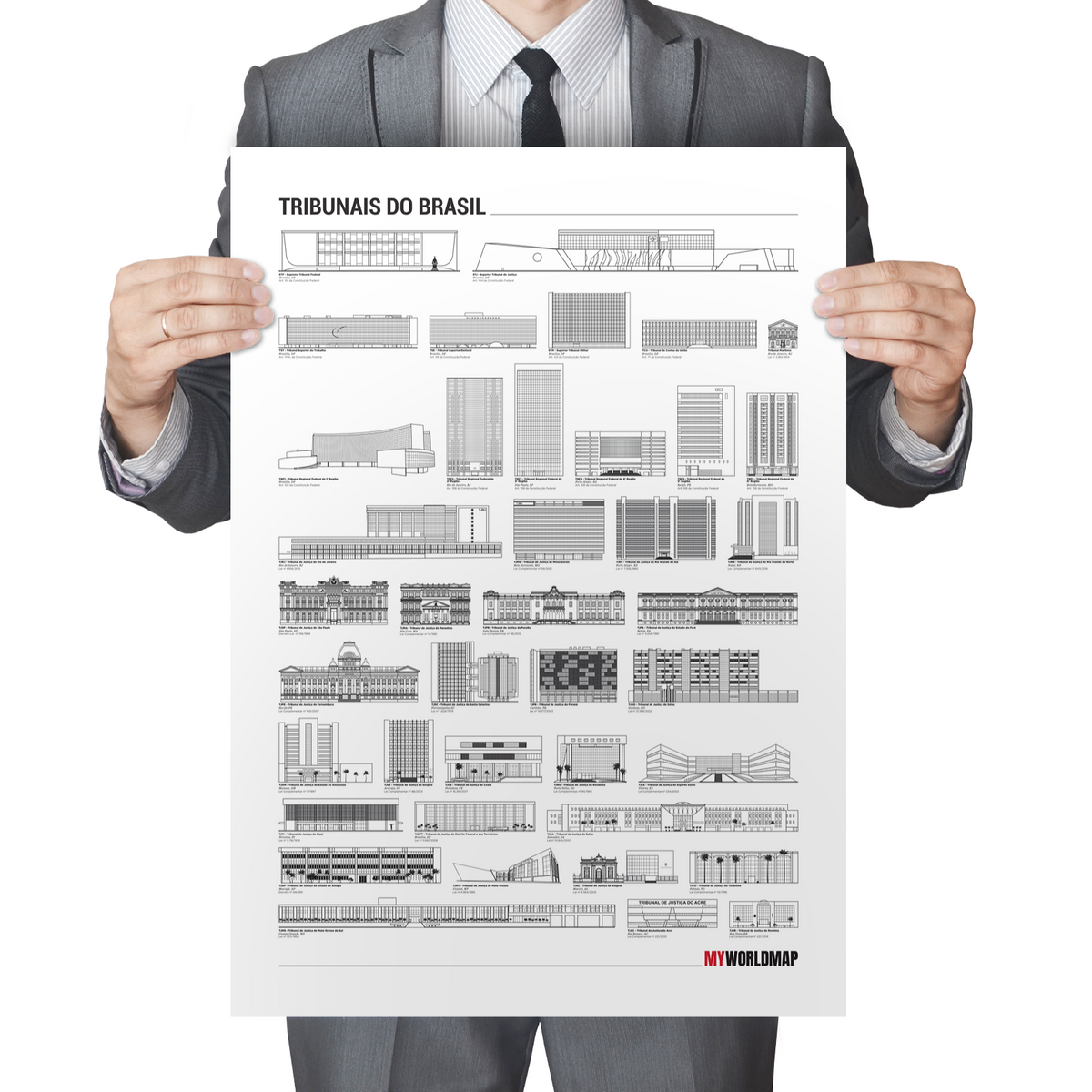 Lista com Tribunais do Brasil (Tribunais Superiores, TRFs, TCU, Tribunal Marítimo e Tribunais de Justiças Estaduais). Excelente presente para advogados, operadores e acadêmicos do direito. Também é ideal para usar como fundo de seus vídeos e lives jurídicas!