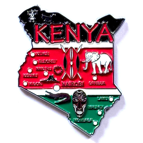 Imã Quênia - Imã Geladeira Metal Quênia com Mapa, Bandeira, Cidades e Símbolos