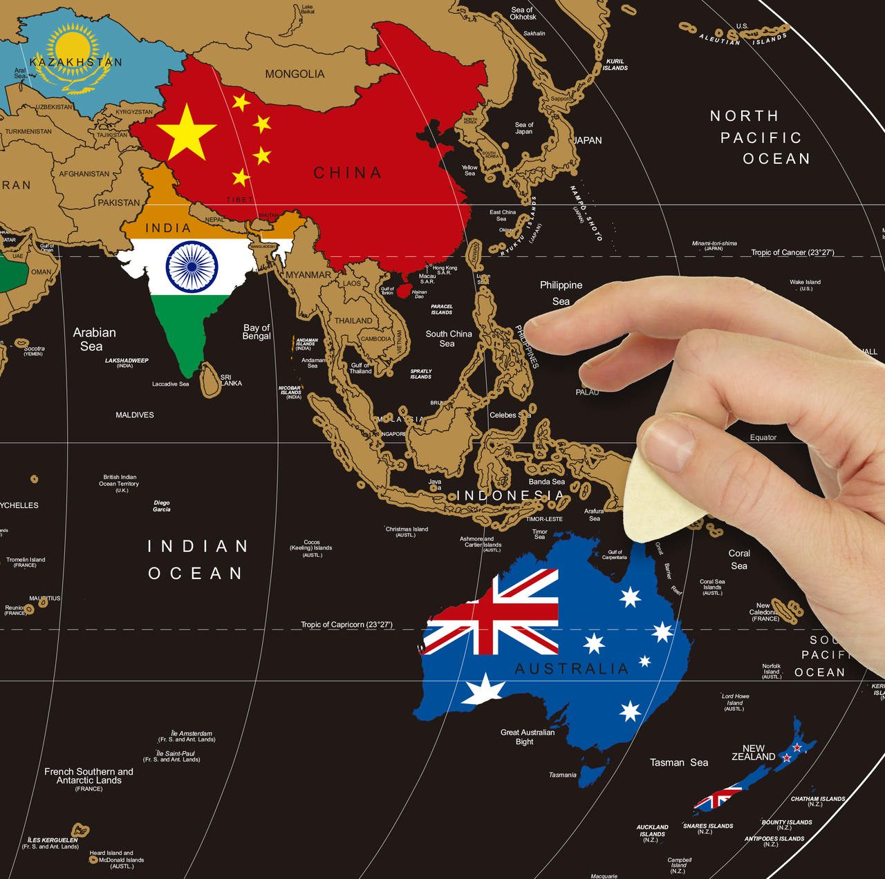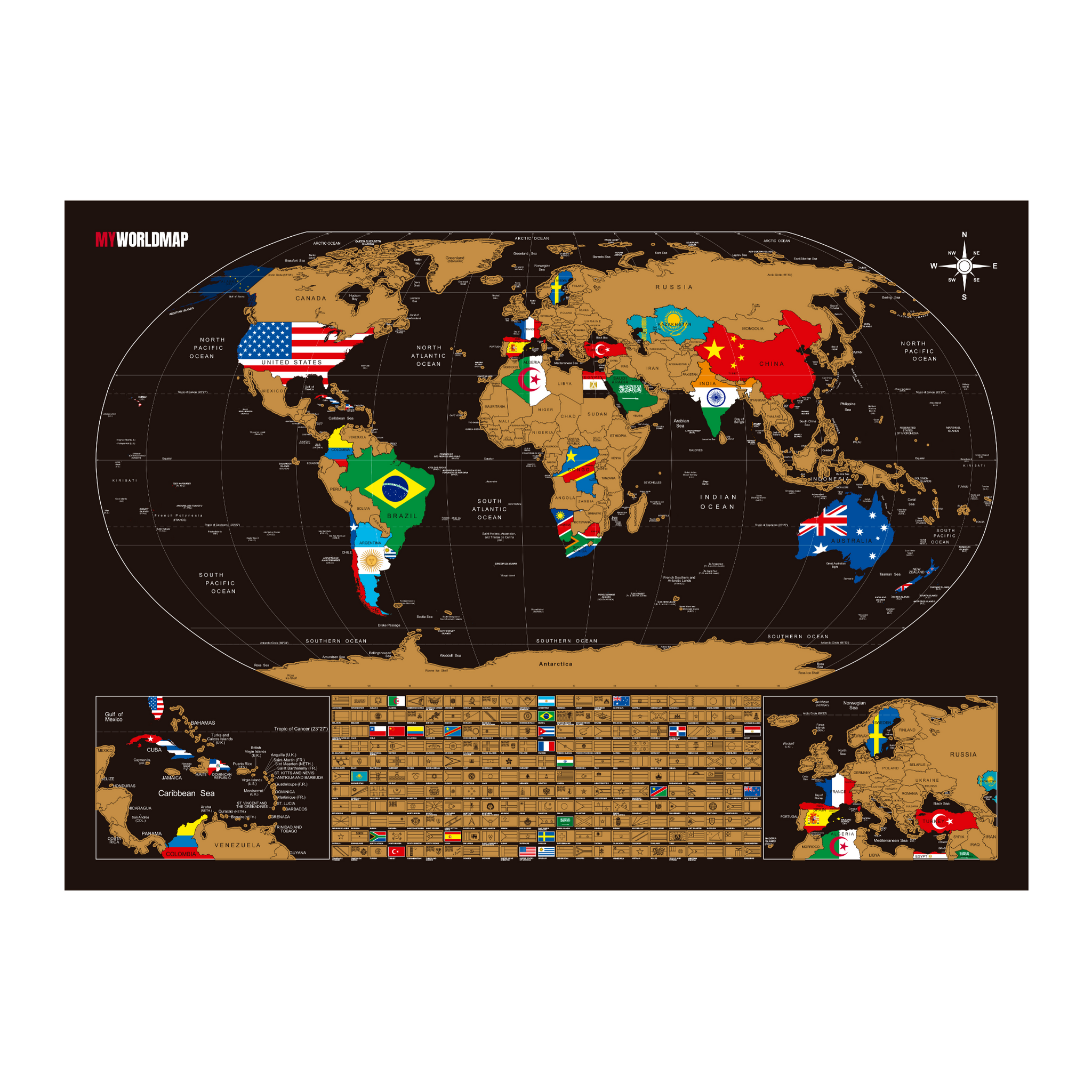 - Mapa Mundi de Raspadinha com bandeiras dos países.